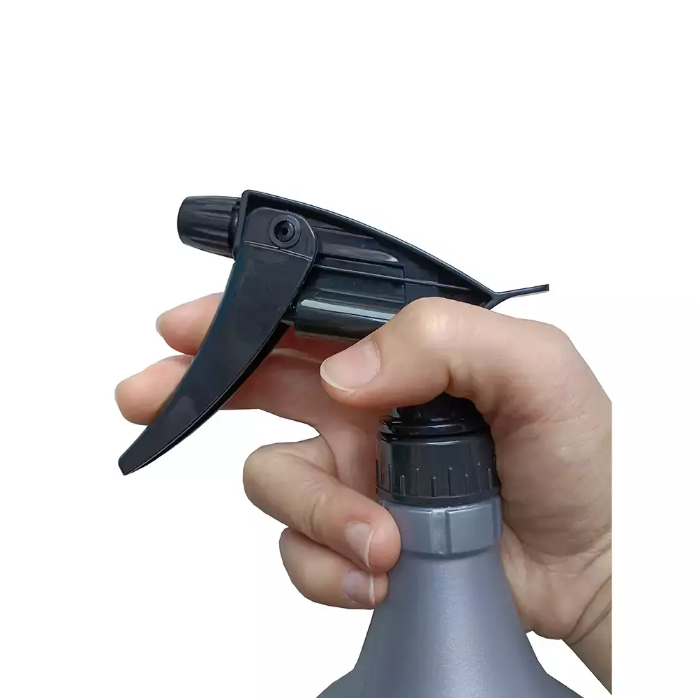 Rociador manual de 1 litro de capacidad, fabricado en plástico resistente, ideal para trabajos de detailing automotriz, instalación de láminas de polarizado y car wrapping. Su gatillo ergonómico permite una pulverización uniforme y controlada, facilitando la aplicación de agua, soluciones jabonosas o líquidos limpiadores.